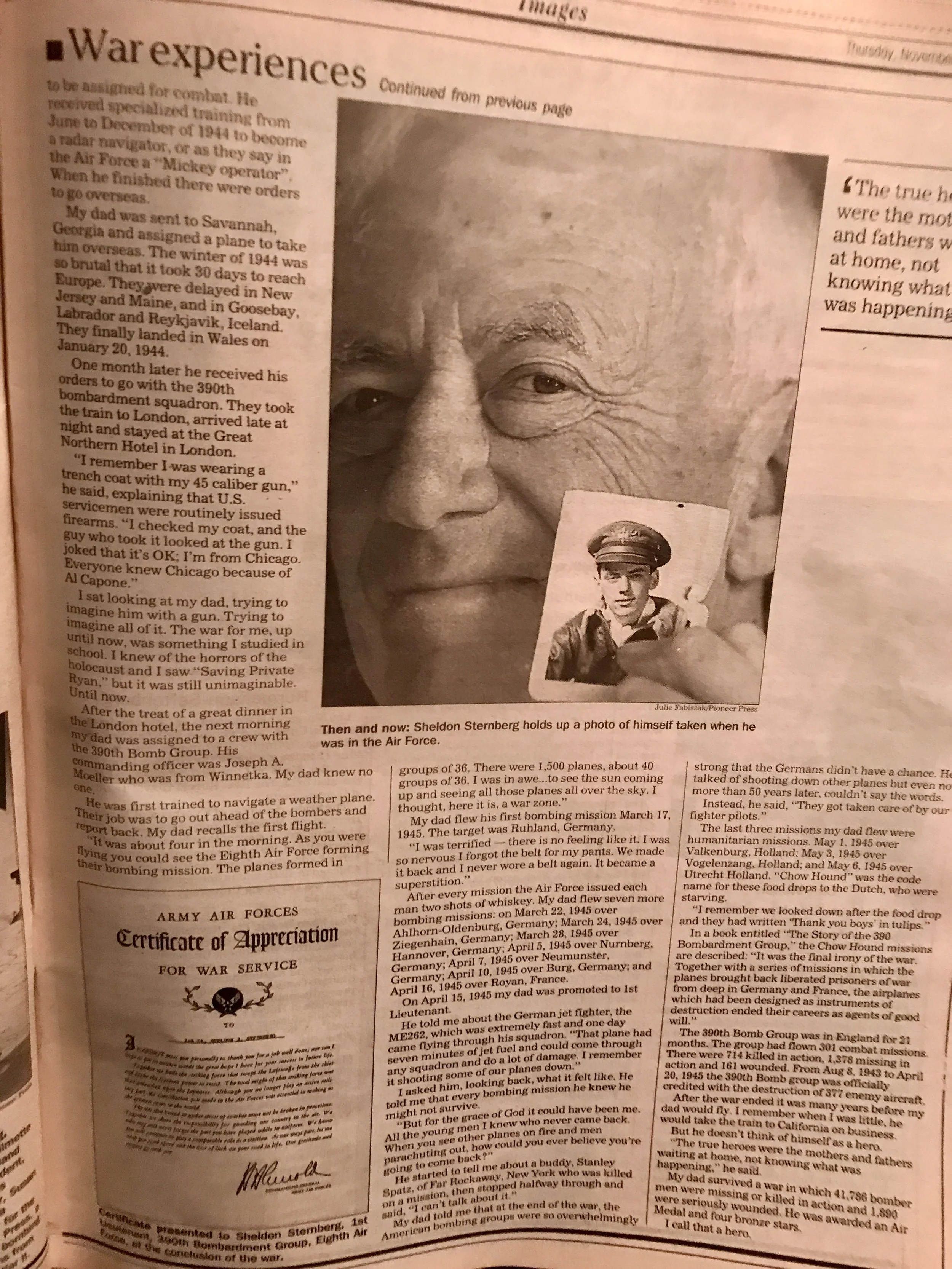 My dad survived a war in which 41,786 bomber men were missing or killed in action and 1,890 were seriously wounded. He was awarded an Air Medal and four bronze stars.